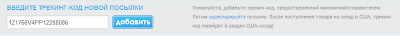 1. В поле «Введите трекинг-код новой посылки» введите трекинг-код посылки, предоставленный продавцом. Если трекинг-код данному товару не присваивается, введите Номер Ордера заказа. !